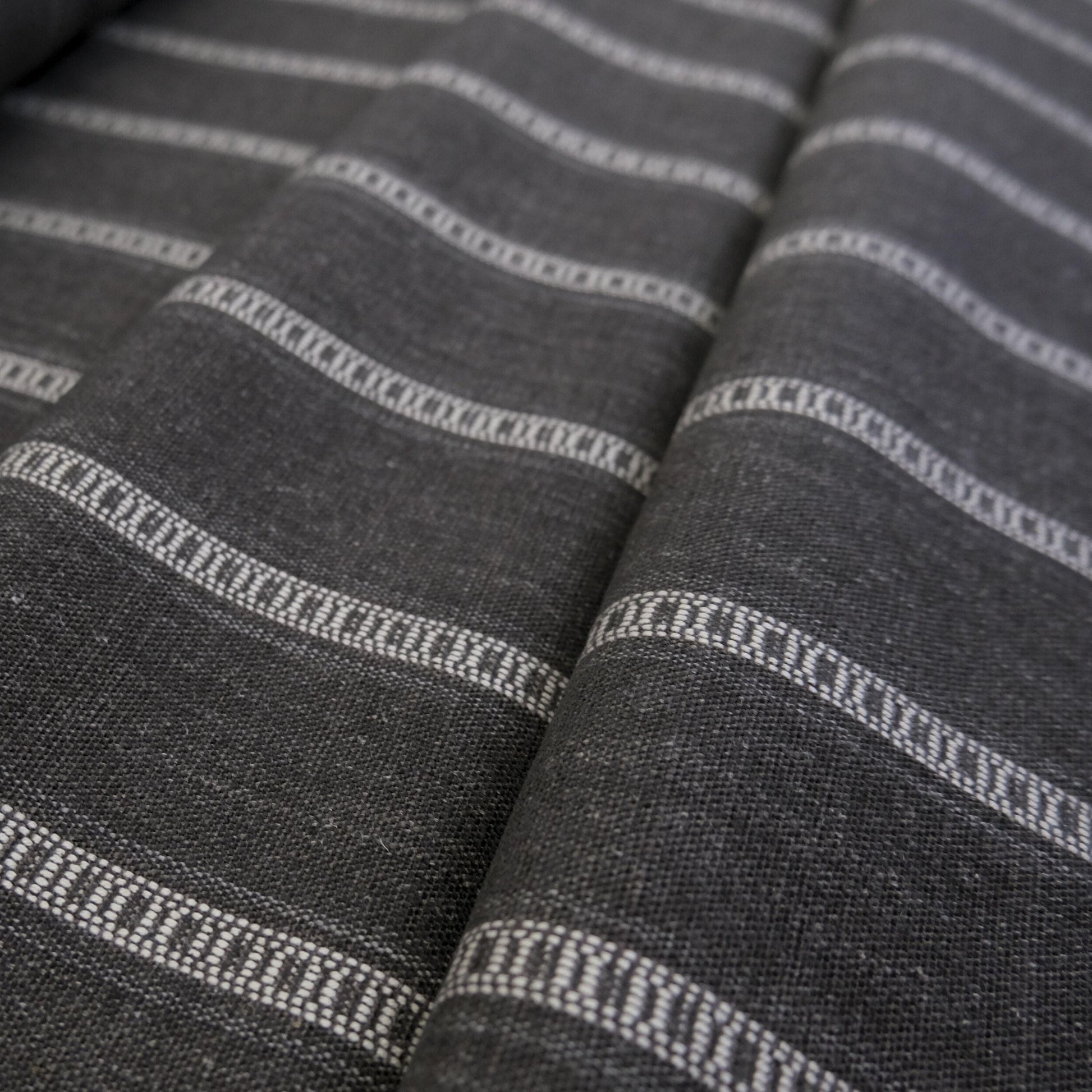 This brown stripe upholstery fabric features a large-scale woven striped textile, perfect for any furniture or home decor project. Offered in bulk yardage, this durable furnishing material is ideal for creating custom cushions, drapery, and upholstery with a sophisticated striped design.