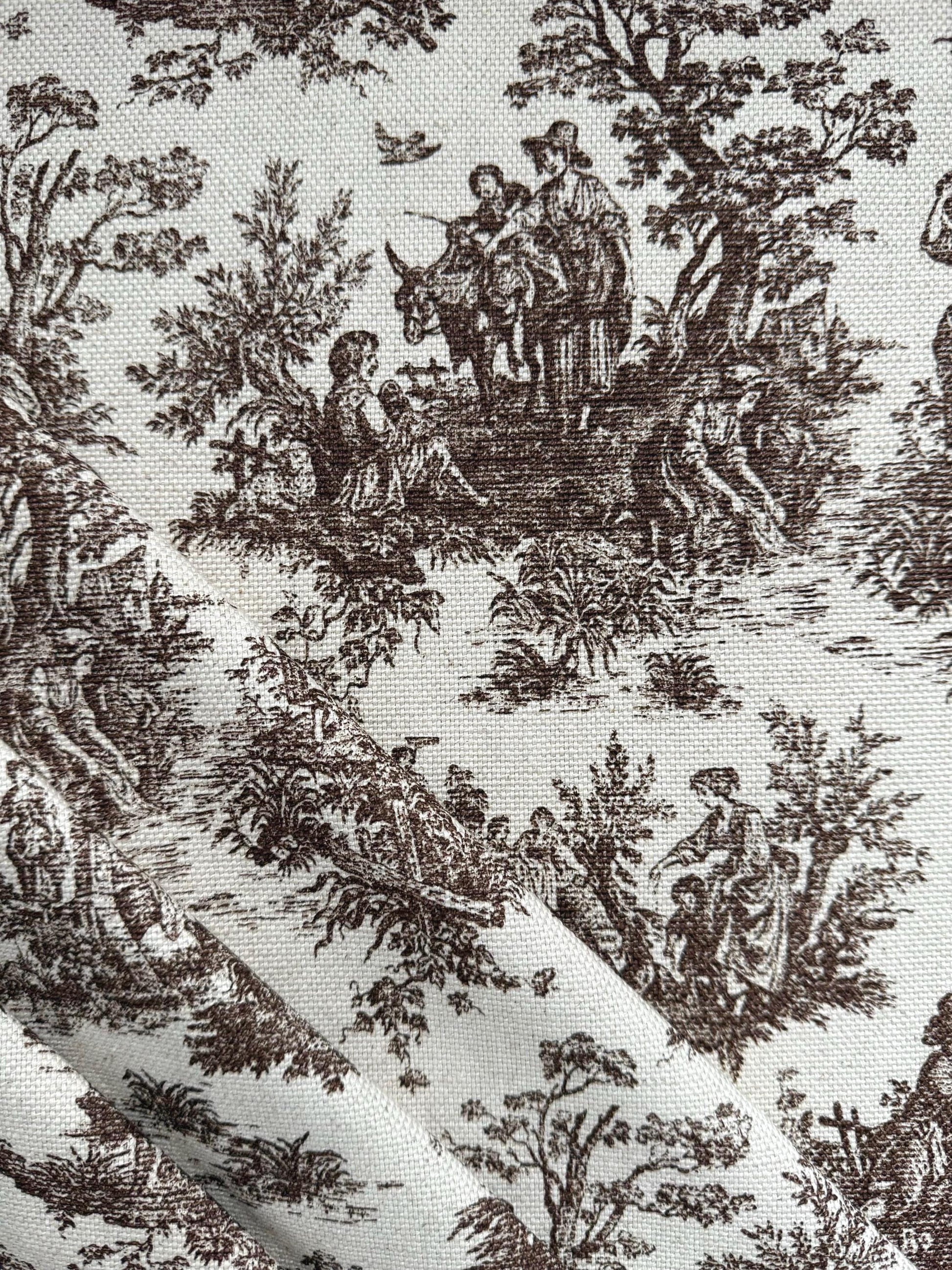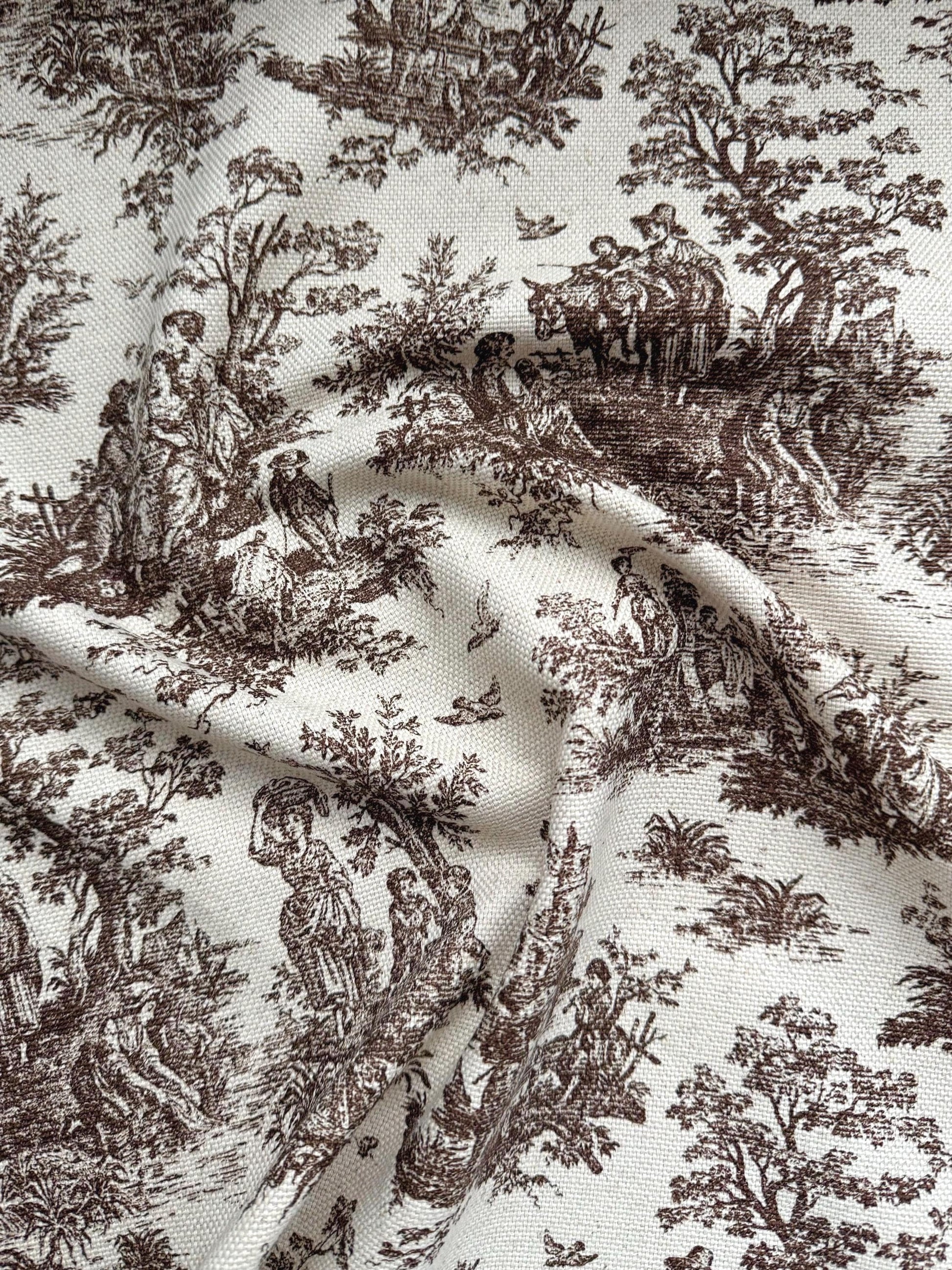 Add timeless sophistication to your next creation with our Brown Toile Cotton Fabric, showcasing a delicate French country scenic print in neutral tones. Ideal for curtains, pillows, upholstery, quilting, and vintage-inspired crafts, this fabric brings a refined, rustic charm to any interior or garment. The breathable cotton blend offers both softness and strength—perfect for a wide range of home and apparel projects.