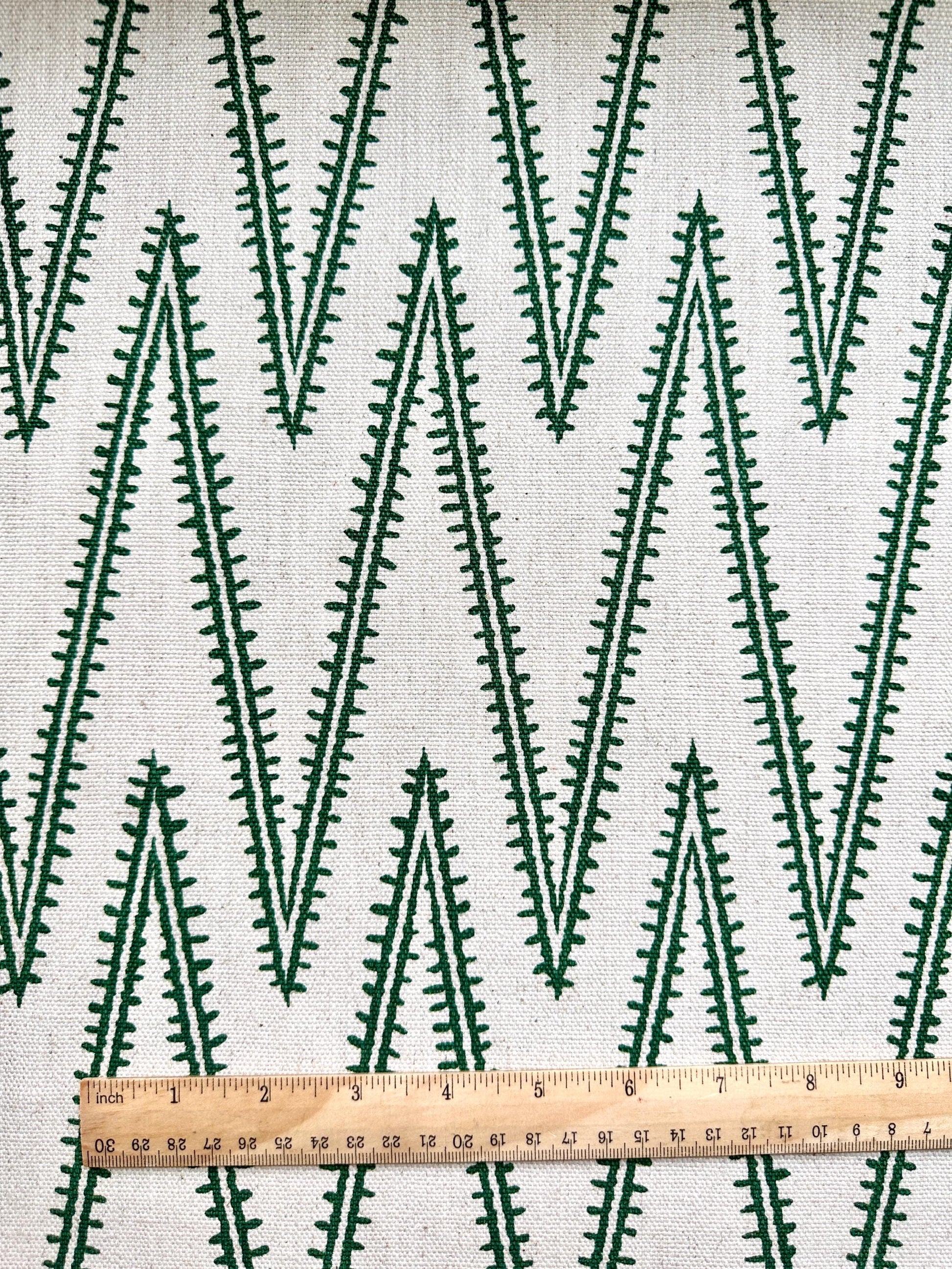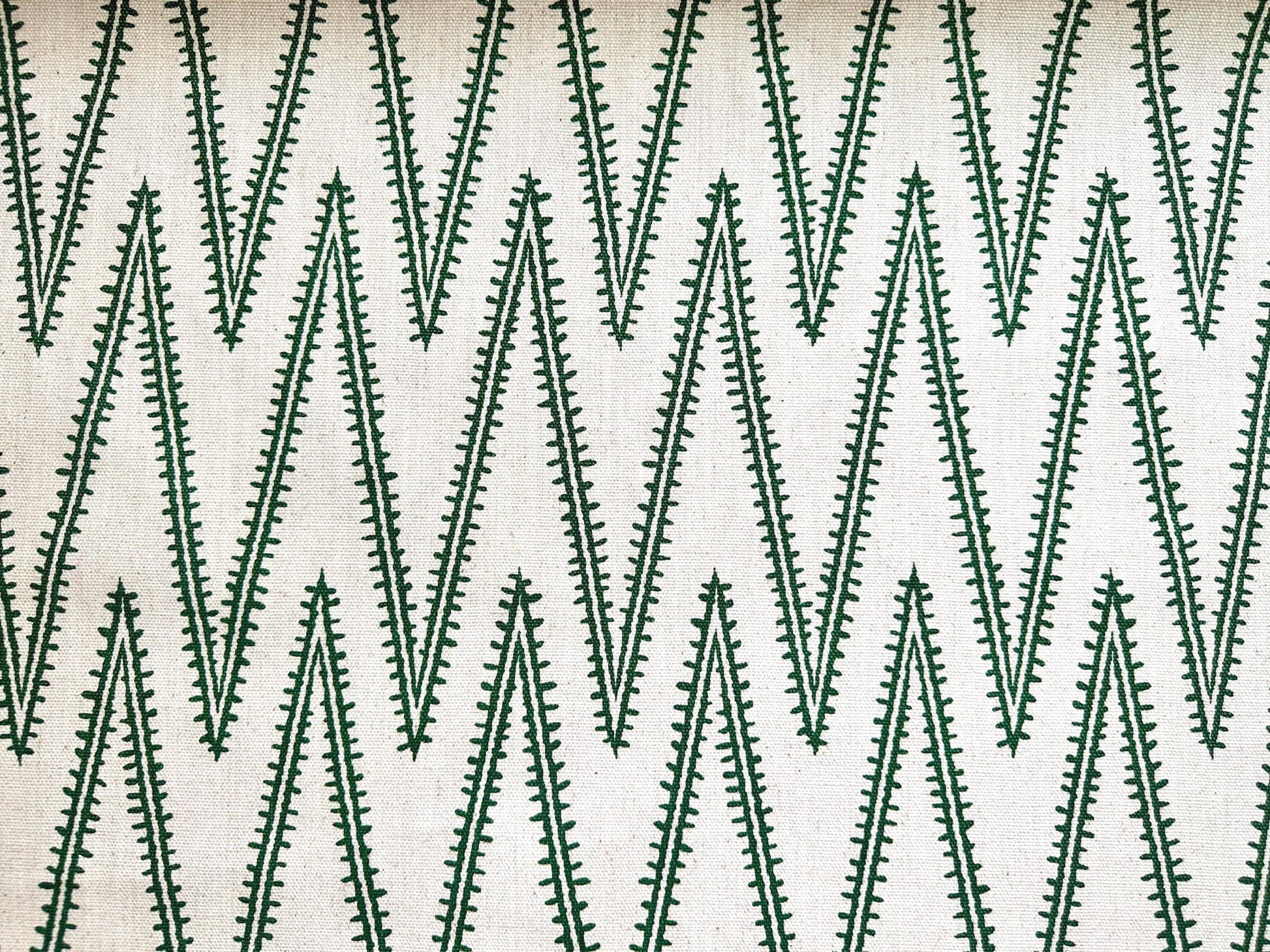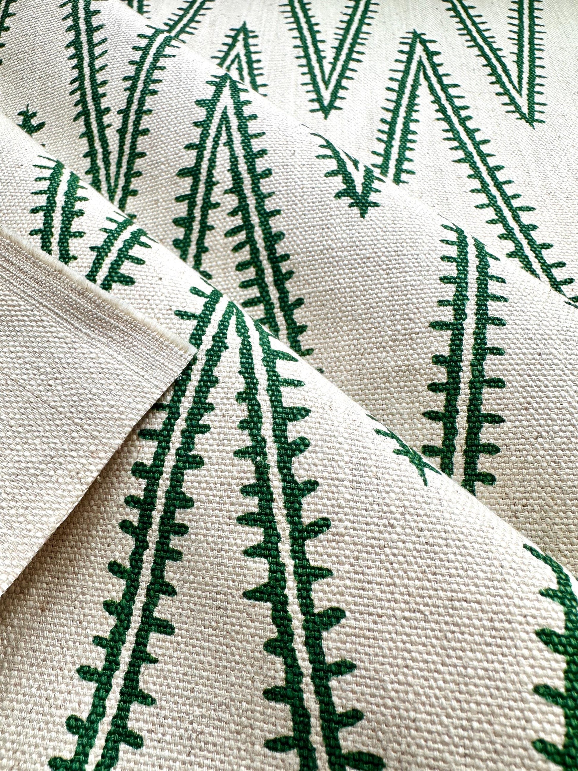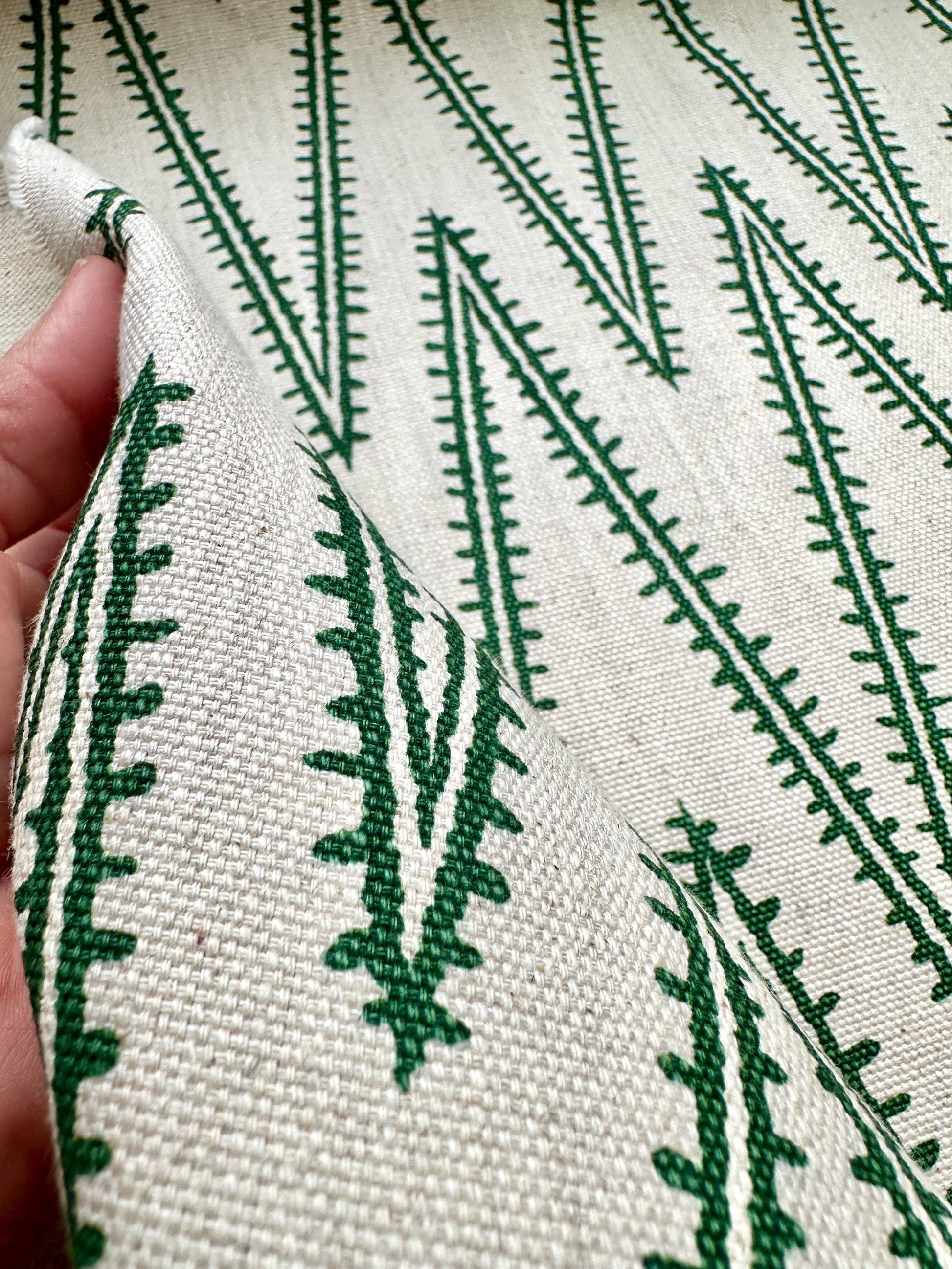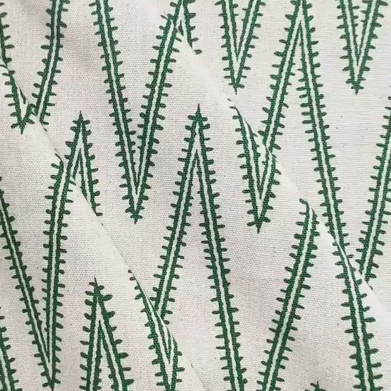 This green stitch cotton fabric features a decorative linear pattern inspired by natural textures, adding a modern organic touch to any room. Ideal as textured green upholstery material or nature inspired home accent for sewing and decor projects.