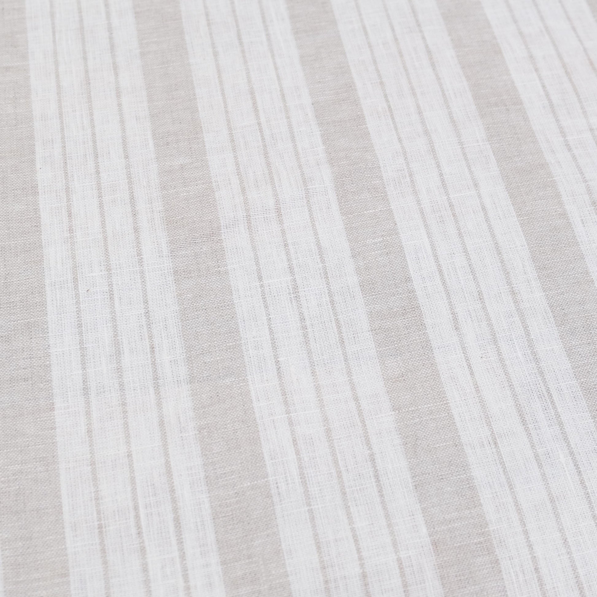 This taupe stripe linen fabric features soft neutral lines and a breathable weave. Perfect for curtains, table linens, pillow covers, cottage décor, and a wide range of DIY sewing projects.