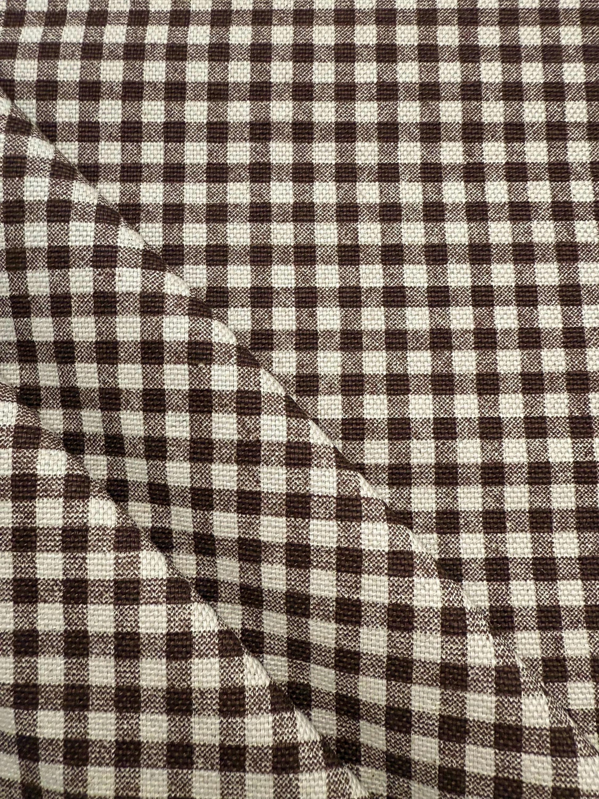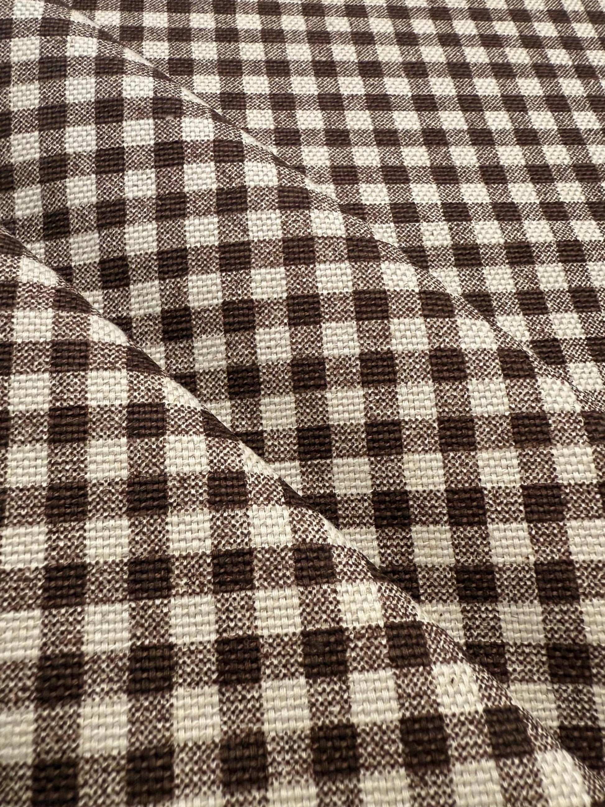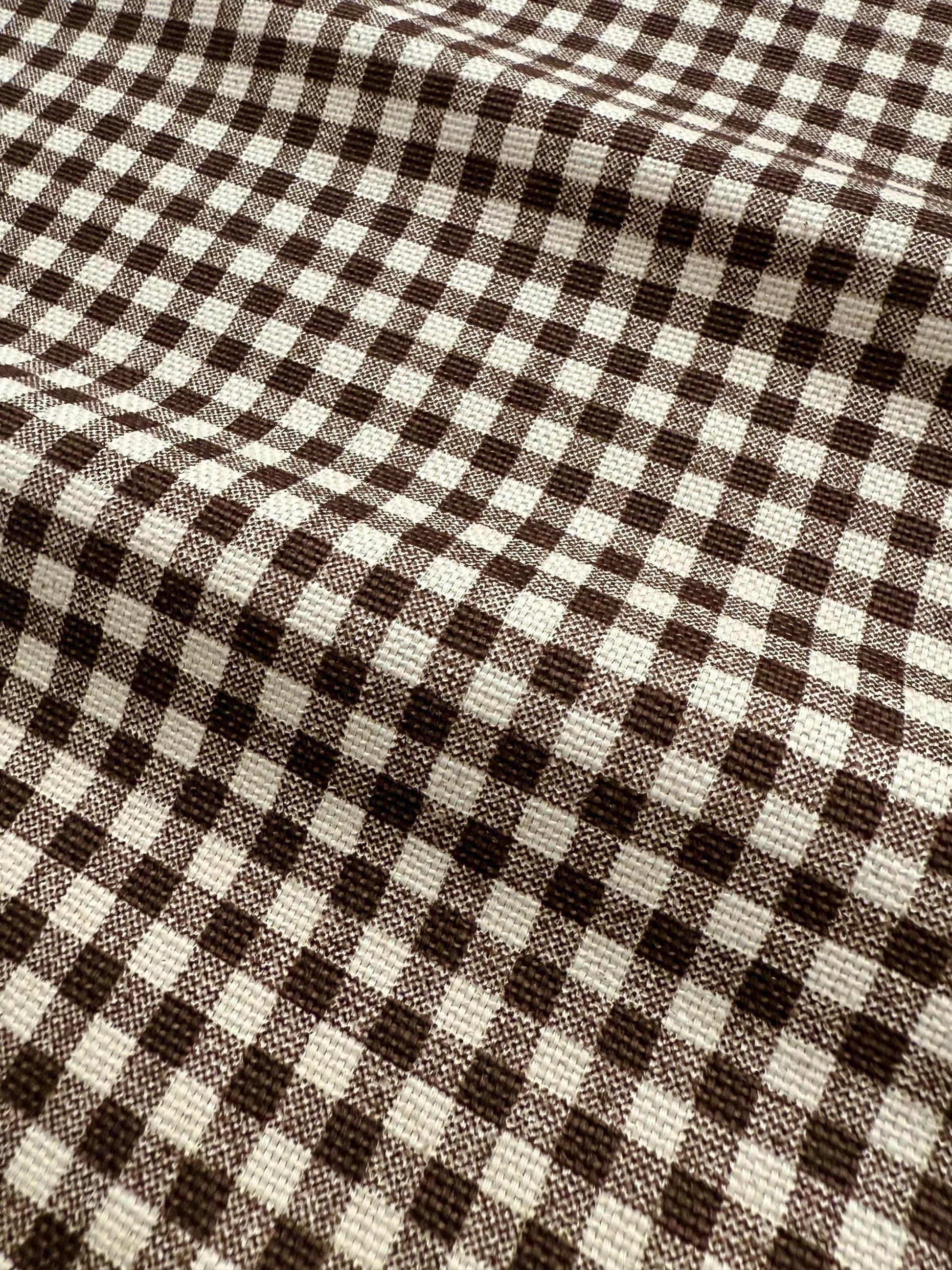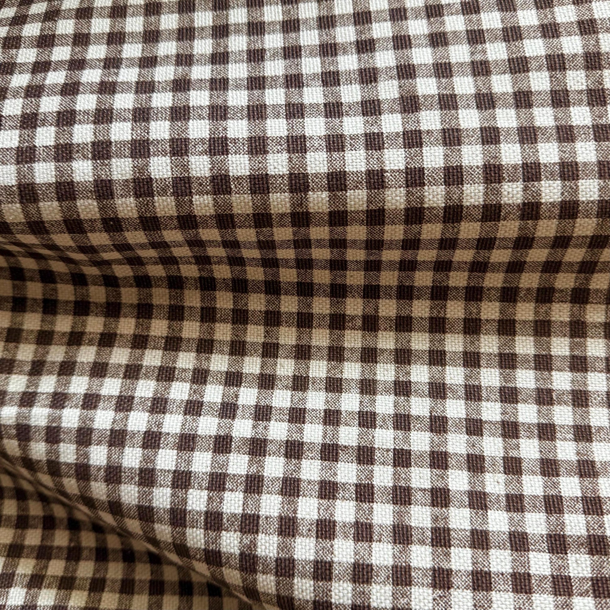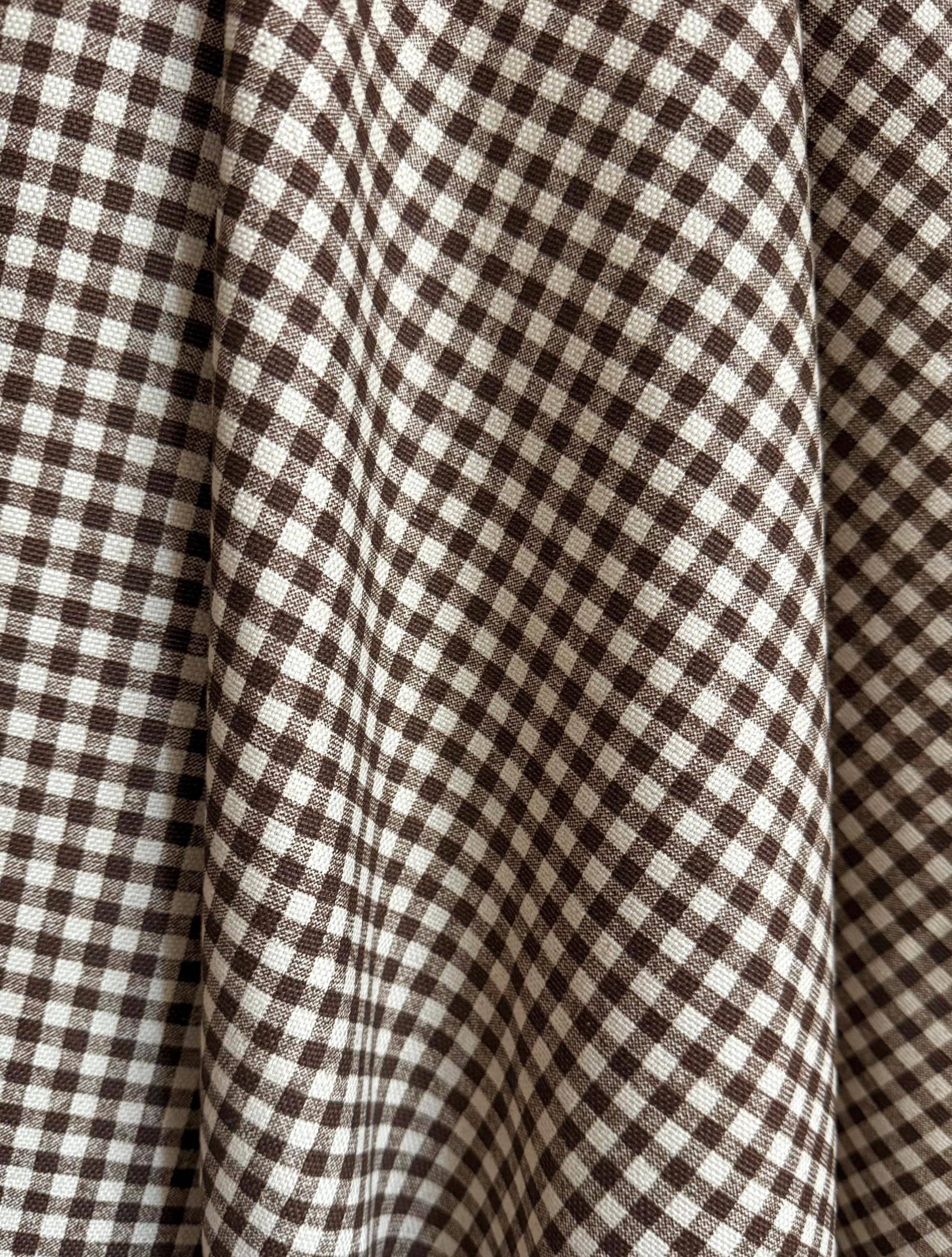 Warm brown gingham check fabric offers a vintage look with a rustic twist, great for kitchen updates or handmade throws. Made from soft cotton material, this country style sewing fabric is ideal for upholstery, pillows, and classic home accents.